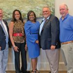 BLYTHEWOOD – Town Council members and residents gathered at the Manor prior to Monday night’s town council meeting to meet and greet the town’s new magistrate, Diedra Hightower, center. From left: Town Councilmen Larry Griffin and Bryan Franklin, Sen. Mia McLeod, Hightower, Mayor J. Michael Ross and Town Councilmen Eddie Baughman and Malcolm Gordge.