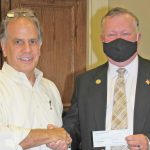 BLYTHEWOOD – Paul Moscoti, president of the Doko Park Foundation, presented a check for $25,000 to Mayor Bryan Franklin Monday evening. The money is earmarked for projects in Doko Park. “Our focus now is on construction of a facility for the farmers market,” Moscoti said. The Foundation has raised more than $300,000 for park projects.