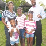 Downtown Winnsboro’s Third Thursday last week drew hundreds who enjoyed a screening of “E.T.,” hopscotch, food and fun. Pictured: The new Fairfield School District’s Superintendent J.R. Green, right, showed up with his wife Tonya, left, and their daughters Jacia, 7, and twins Jamara and Janelle, 11