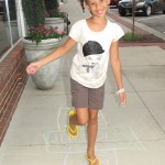 Downtown Winnsboro’s Third Thursday last week drew hundreds who enjoyed a screening of “E.T.,” hopscotch, food and fun. Pictured: Kiaria Harris shows off her hopscotch skills on S. Congress Street