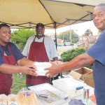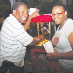 Downtown Winnsboro’s Third Thursday last week drew hundreds who enjoyed a screening of “E.T.,” hopscotch, food and fun. Pictured: Maggie and Leon Adams sold fish and chicken at their L&M Pitt Stop tent on the lawn. Steven Dorsey, right, bought one of each