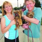 Downtown Winnsboro’s Third Thursday last week drew hundreds who enjoyed a screening of “E.T.,” hopscotch, food and fun. Pictured: Tim and Nancy Wilks brought their Yorkies Mitze and Bitzi.