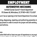 Carolina Technical Fabrics has an opening for a Texturizer Operator on 3rd shift. Pay is $12 – $14 hr. DOE. Employee will operate a machine that transfers fiberglass yarn from a bobbin to a paper core that are used in the weaving process. Applicants can come to the plant at 200 Tillessen Blvd. in Ridgeway […]