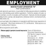 EMPLOYMENT: Water Plant Operator “B”, Town of Winnsboro