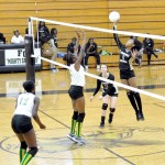 Fairfield Central’s Dajai Robertson returns a North Central serve Tuesday. The Lady Griffins fell to the Lady Knights in straight sets, 25-14, 25-12 and 25-12.