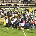 WINNSBORO – Following a tough game, players and fans from Newberry and Fairfield Central joined at midfield for a moment of silence to remember fallen teammates: CJ Simmons (Fairfield) and Devonta Ruff (Newberry).