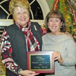 Deborah Richelle, left, president of the Hoof & Paw Benevolent Society Board, presents a plaque to Board member Kathy Faulk for being named the group’s first Volunteer of the Year.