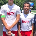 ANDERSON – Logan Shay, left, and Devin Shepard, center, represented Blythewood last Saturday in the North-South Soccer Classic game at T.L. Hanna High School. Shay, who was selected as Captain for the South, had a goal and assist in the South’s win 5-2 and was named team MVP following the game.