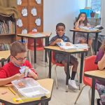 WINNSBORO – The school day was a little different for students at Midlands STEM Institute during their first day of the year on Monday. Pictured above, students eat boxed lunches at their desks.