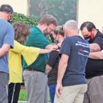 WINNSBORO – Richard Winn held a community Prayer Walk last Wednesday. Held the night before the new school year began, around 70 people participated in the walk. Shown here, local pastors surround Head of School Kristen Chaisson in prayer.