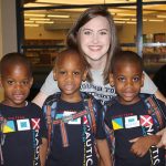 Teaching Assistant Lysa Pendergast warmly welcomes brothers Isaiah, Josiah and KJ Lemon to a new school year at Round Top Elementary. Isaiah and Josiah walked their younger brother KJ to his first-grade classroom.