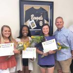 BLYTHEWOOD – Blythewood High School (BHS) softball players Kendall Parker, Grace Campbell and Taylor Fulmore received the inaugural Sydney Burnsed Scholarship. Presenting the award are Sydney’s parents, Shelley and John Burnsed and BHS principal Matthew Sherman, far right. Sydney, a former BHS softball team member, died in an auto accident in March 2018.